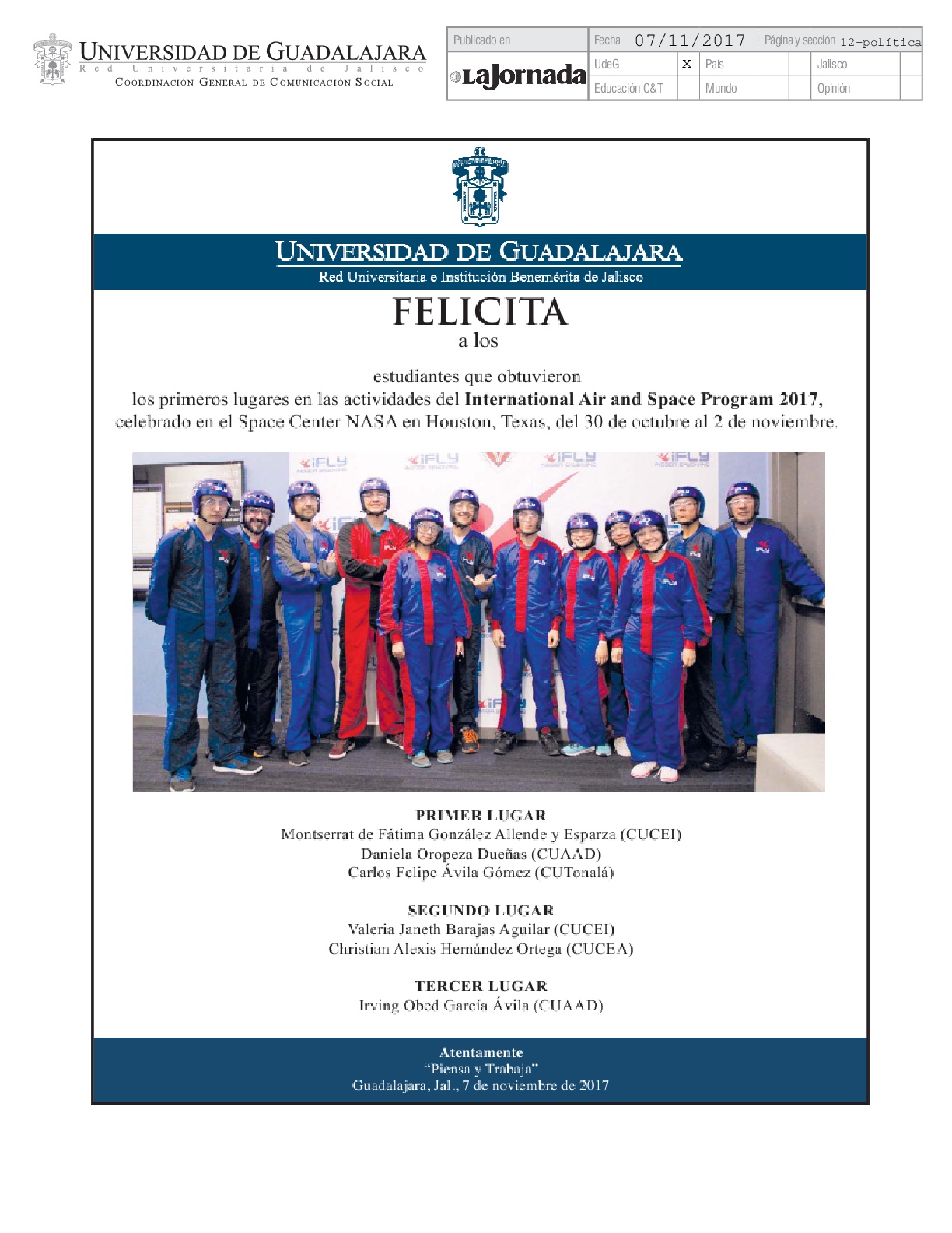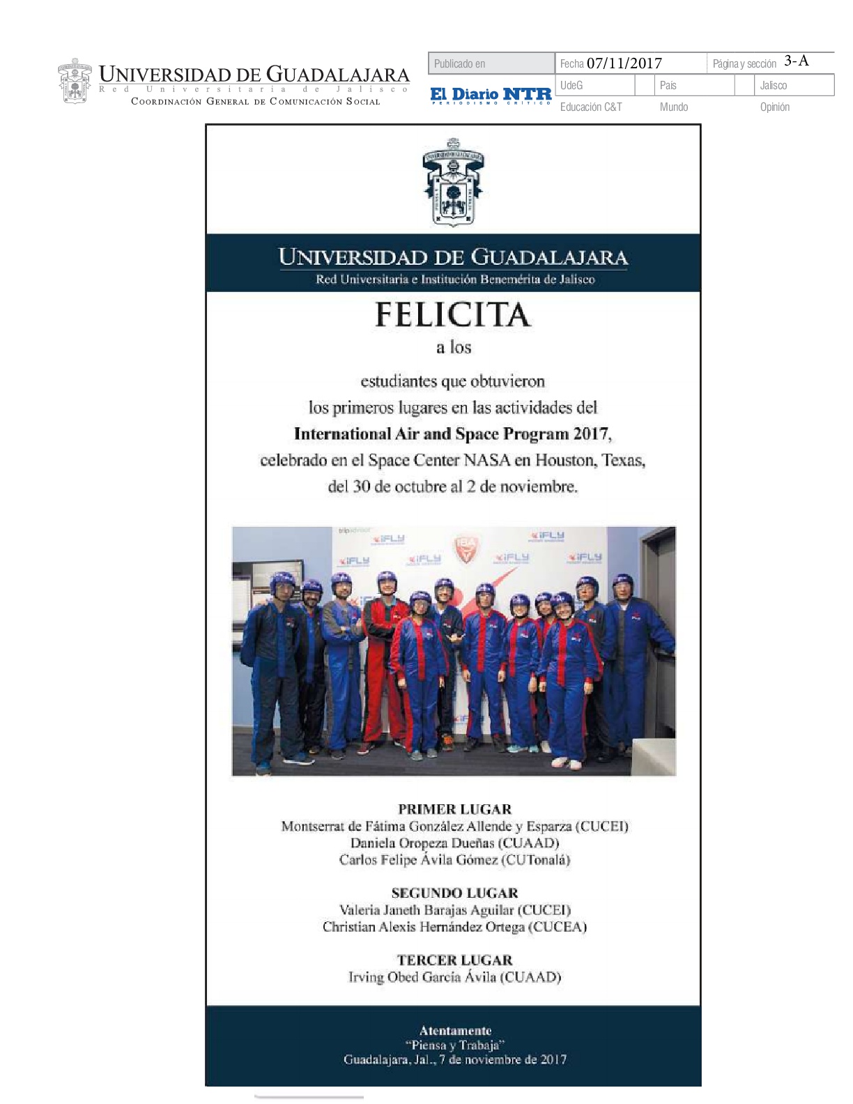 Lunes 13 de Noviembre de 2017